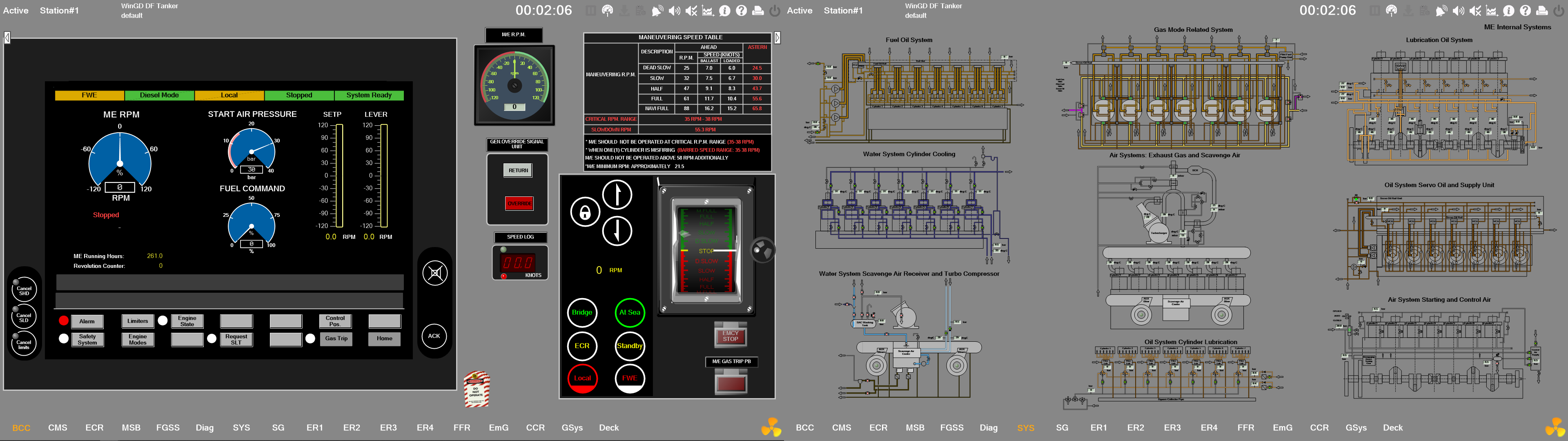 Программа содержит модели двигательной установки, электростанции, компьютеризированной системы мониторинга (CMS), интегрированной системы подачи топливного газа (FGSS), вспомогательных систем, оборудования, агрегатов и механизмов современного двухтопливного двигателя WinGD X62DF (главный низкооборотный, реверсивный двухтактный двигатель без распределительного вала с жесткой прямой связью, оснащенный системой впрыска топлива common rail и газом низкого давления; MCR 2,385 кВт/цилиндр при 88 об/мин.).
